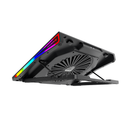 CP5050 gaming cooling pad, specially designed for notebook computers, with fast cooling speed and low noise, the cooling pad has RGB backlight design, which perfectly matches your notebook computer and related electronic equipment, highlights the atmosphere, puts you in a colorful world, provides Immersive user experience. The upper cover of the heat dissipation pad is designed with aluminum alloy material, which can effectively reduce the heat of the computer, say goodbye to the freeze due to overheating in the game, and make the game process smoother. You can also manually adjust the speed of the fan. The bottom of the cooling pad is designed with a foot rest, so that the computer will not slide down easily. The height of the cooling pad can be adjusted according to your own habits. There are four levels of height adjustment. USB power supply, plug and play, no need to drive. Suitable for 9-19 inch laptops.