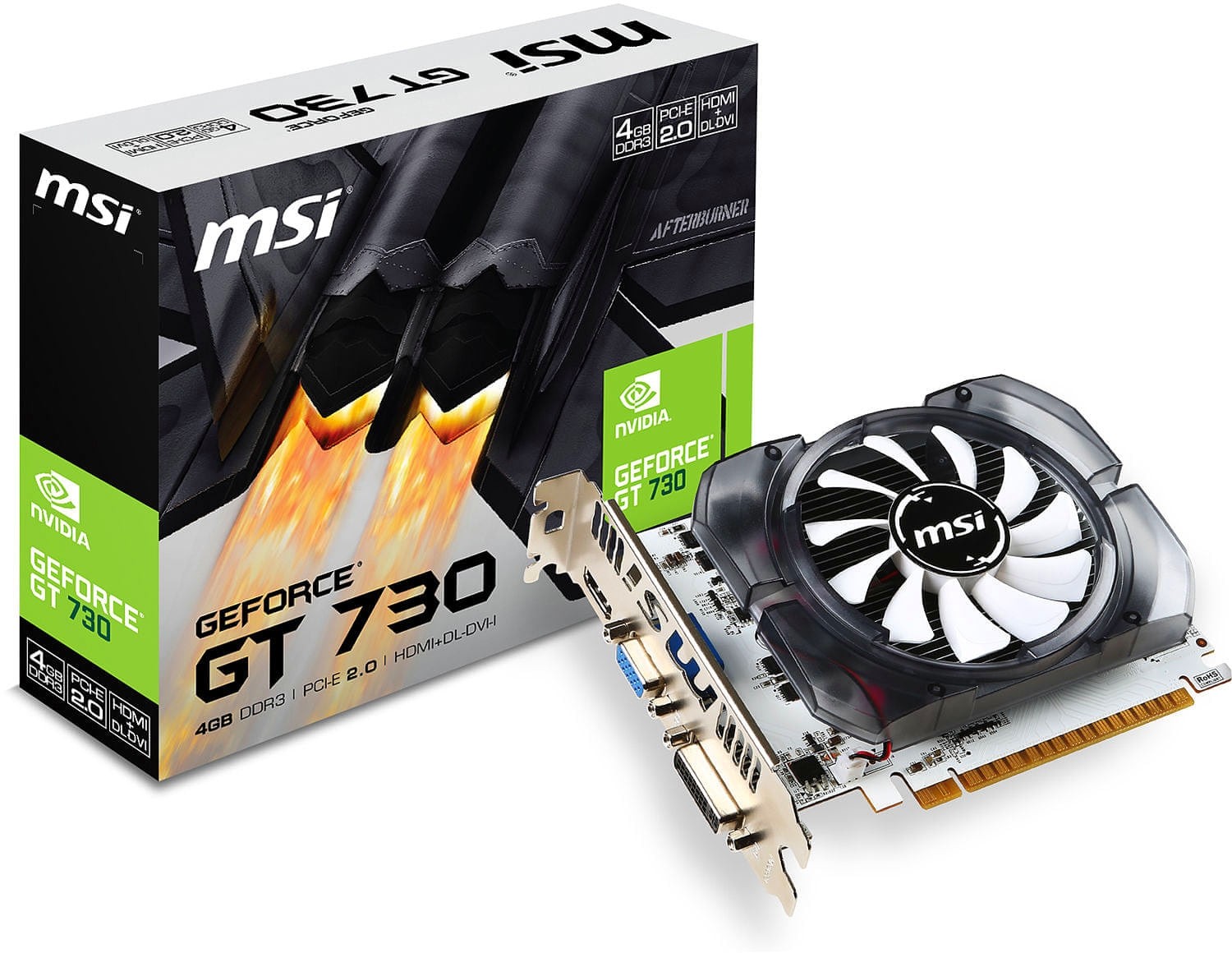 - GeForce GT 730 - Core Clock: Up to 700 MHz - Memory: 4GB DDR3 - 1x HDMI 1.4a, 1x Dual-Link DVI-I, 1x D-SUB (VGA) - Kepler NVIDIA Architecture - Interface: PCI-E 2.0 - 3 Year Warranty